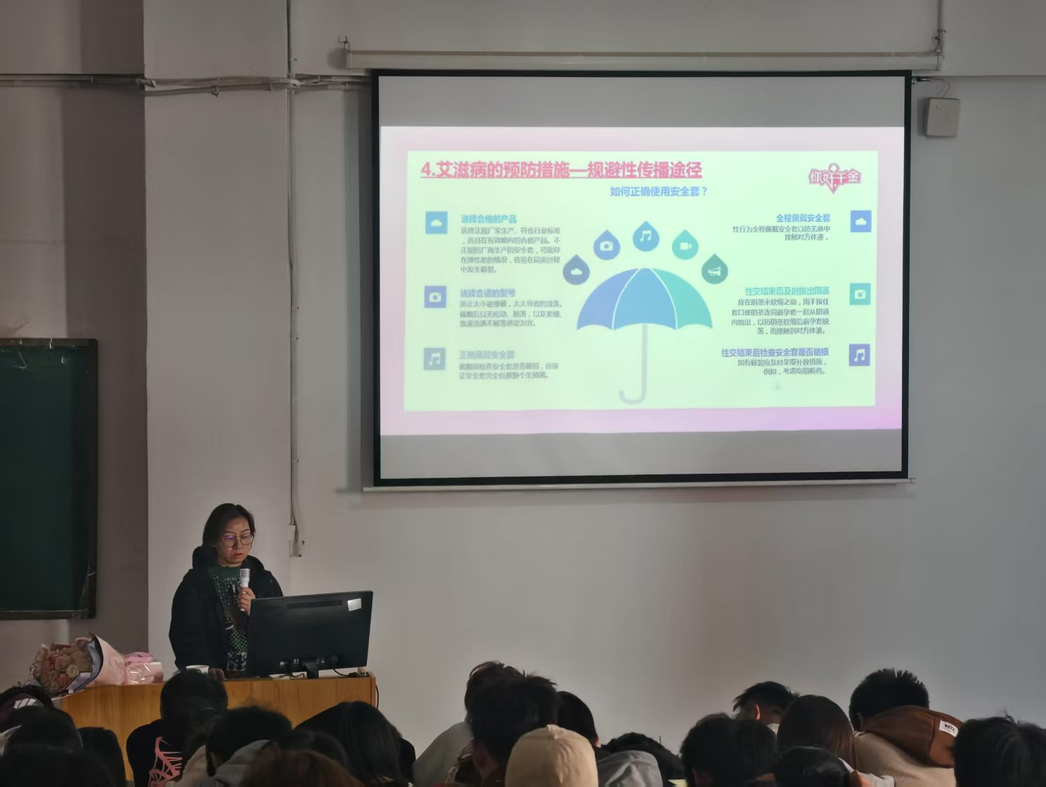 蒋晓敏主任围绕艾滋病的全球流行趋势、我国防控现状、传播途径、预防策略及最新研究进展进行了深入讲解。详细介绍了艾滋病毒的生物学特性、主要传播方式,并强调高危行为的防范措施。此外,她结合长期临床研究和防控实践,解析了我国艾滋病防治政策、抗病毒治疗的进展及社会支持体系的完善,强调早期检测、规范治疗和社会关爱的关键作用。她呼吁青年学子提高自我保护意识,消除对艾滋病患者的歧视,共同营造健康、包容的社会环境。