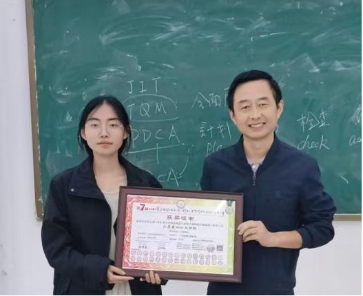 参赛选手王梦燃与指导教师吕小明老师合影