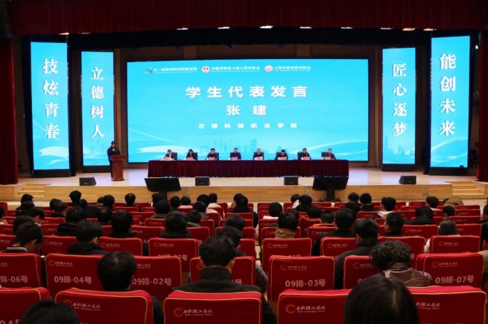 活动邀请了安徽、上海两省市的众多职业教育专家、政府领导、一线教师现身说法,通过专家报告、主题演讲等形式,就进一步加强两省市之间职业教育合作,努力提高两省市职业教育发展质量集思广益。我校选派的张建同学作为学生组参赛选手代表在会场进行了发言。活动现场还举行了“安徽省成人与职业教育协会青年教师发展联盟”揭牌仪式。