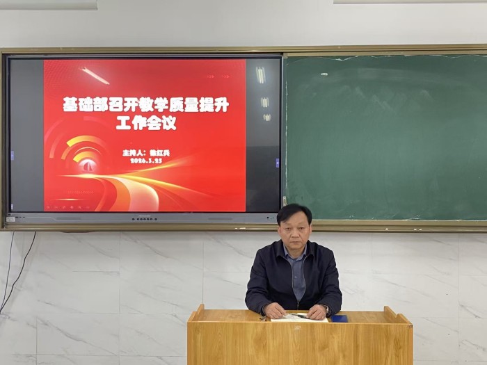 为进一步规范教学管理,提高教学质量,优化课堂教学模式,促进教师业务水平与教学能力的提高,3月25日下午,基础部在1505教室召开教学质量提升工作会议,基础部全体人员参加会议,会议由基础部负责人徐红兵主持。