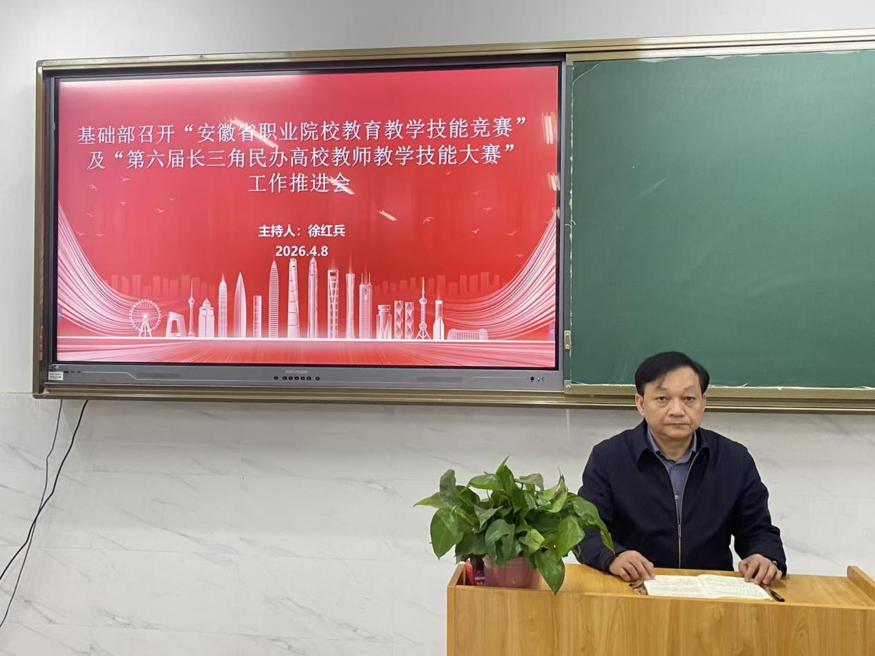 为扎实推进安徽省教学能力大赛和长三角民办高校教师教学技能大赛备赛工作,进一步提升参赛作品质量,4月8日下午,基础部在1505教室召开两项大赛工作推进会,基础部全体人员参加会议,会议由基础部负责人徐红兵主持。