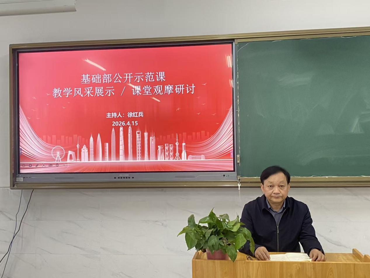 为深入落实立德树人根本任务,聚焦课堂教学质量提升,发挥优秀教师示范引领作用,促进教师教学能力协同发展,4月15日下午,基础部在1505教室举办公开示范课活动,基础部全体人员参加会议,会议由基础部负责人徐红兵主持。